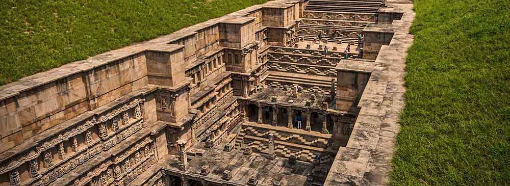 In memory of her husband, King Bhimdev I, Queen Udayamati constructed Rani ki Vav on the banks of the Saraswati River during the 11th century at Patan, Gujarat. It was intended to be an underground shrine or upside-down temple commemorating the sacredness of water. The exquisite stepwell serves as an example of the Maru-Gurjara architectural style’s artistry. Around the 30 metre-deep well, it is divided into seven levels of stairs with sculptural panels of high artistic quality; more than 500 principal sculptures and over 1,000 minor ones combine religious, mythological and secular imagery.