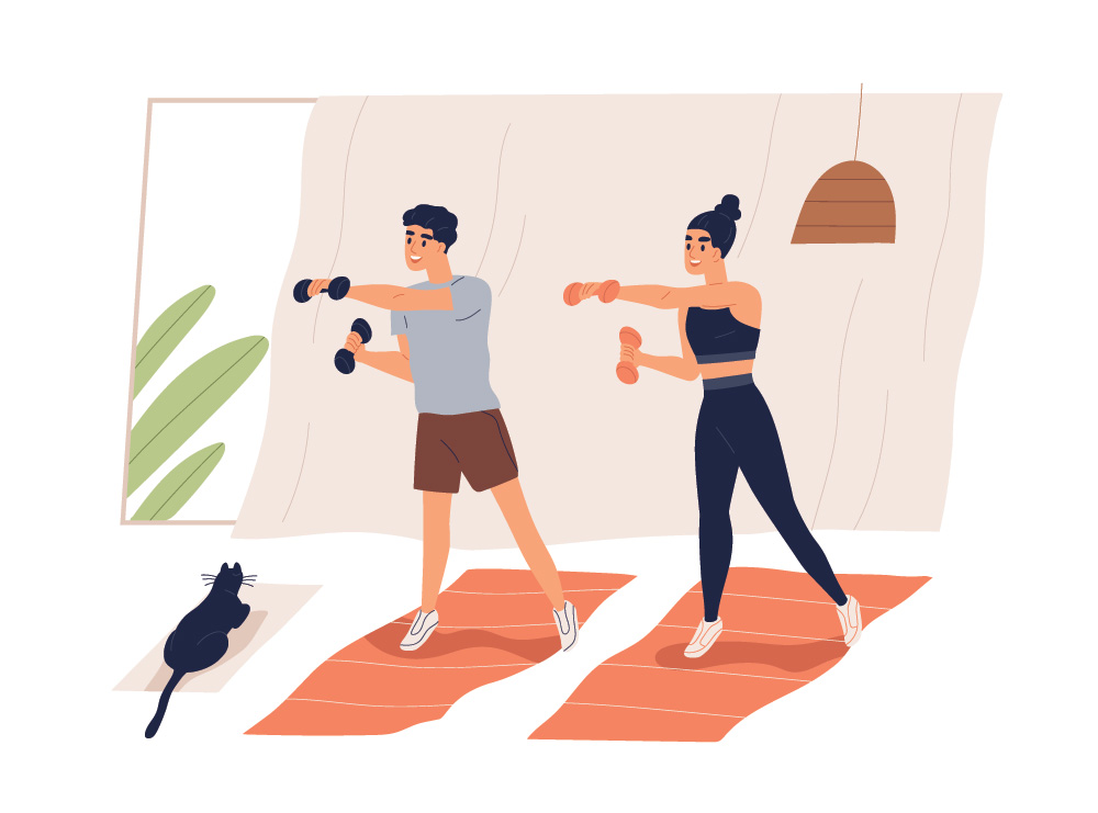 You can either opt for a membership together at a sports/wellness club where you can work out and participate in other activities that interest both of you. For instance, swimming, playing a game of squash, table tennis, Zumba and more such recreational activities. If both of you prefer working out at home then you kill two birds with one stone – a workout companion as well as a personalised trainer who will motivate you to squat those extra five reps.