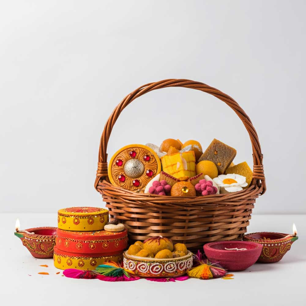 6. Hampers with indoor plants (money plant, tulsi) symbolise growth, positivity, and prosperity.