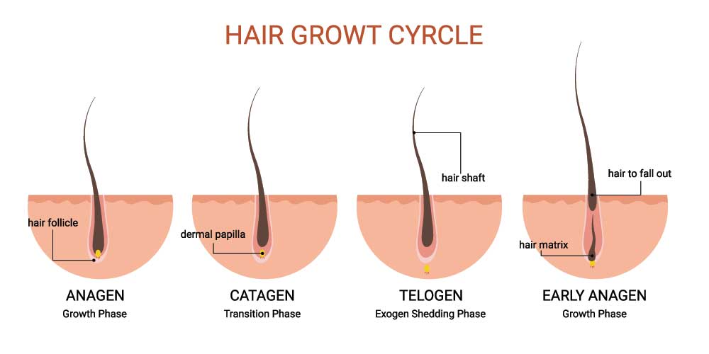 - Telogen (resting phase): Old hair sheds to make way for new growth.