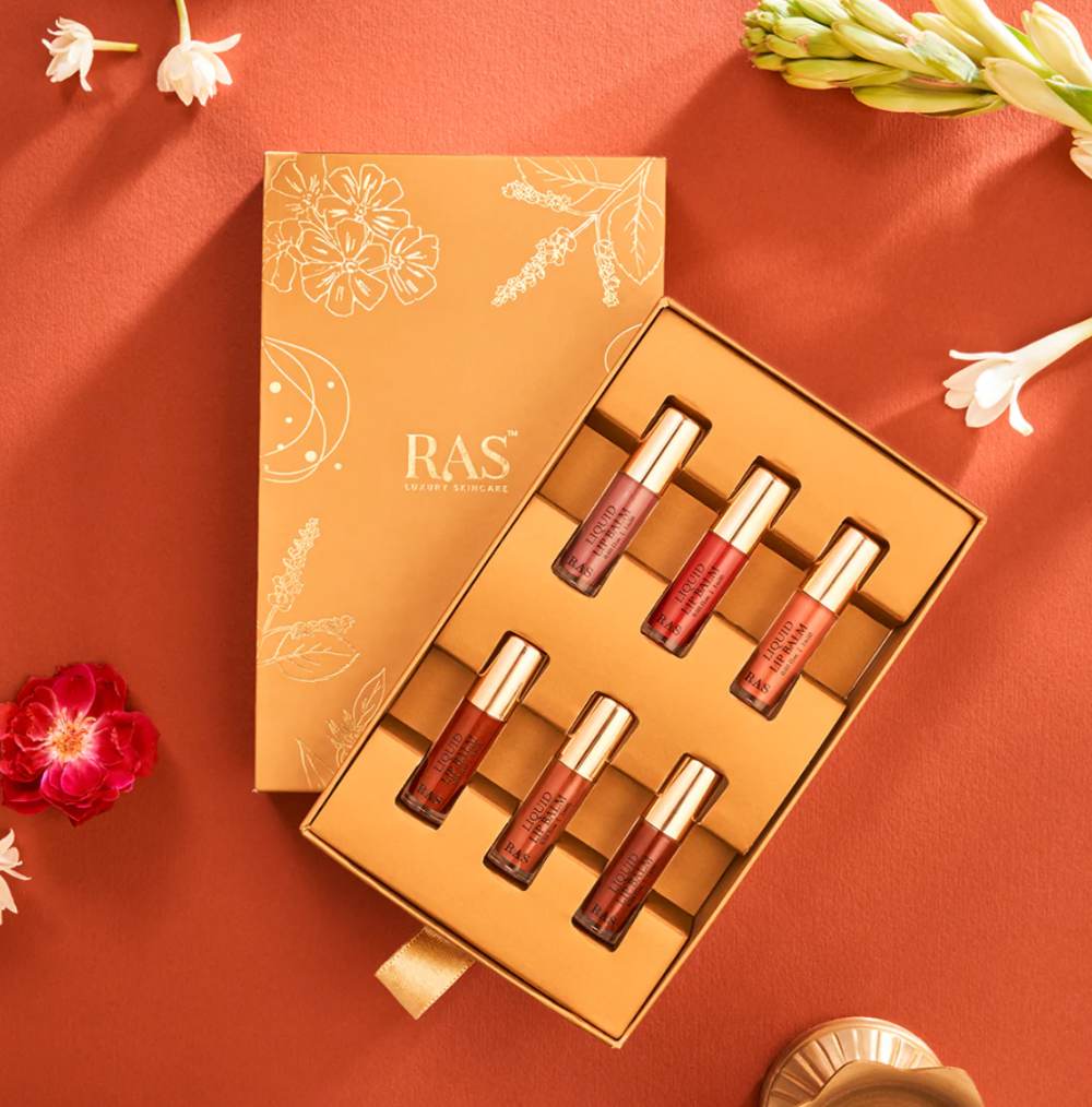 This bold, festive set is filled with vibrant colours, metallics, deep tones, and statement shades. The packaging itself carries a youthful, playful aesthetic. It’s made for people who love to experiment and let their makeup reflect the festival mood.