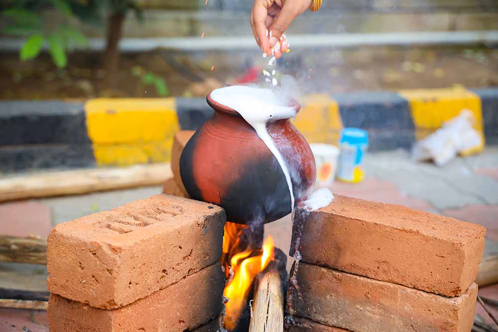 Pongal literally translates to ‘boil over’ or ‘overflow’. It is a four-day celebration in the state, bustling with various activities. Freshly harvested milk and rice are cooked outdoors and offered to the Sun God. Tamilians use rice powder to create customary designs outside their homes known as kolams, to commemorate the occasion.