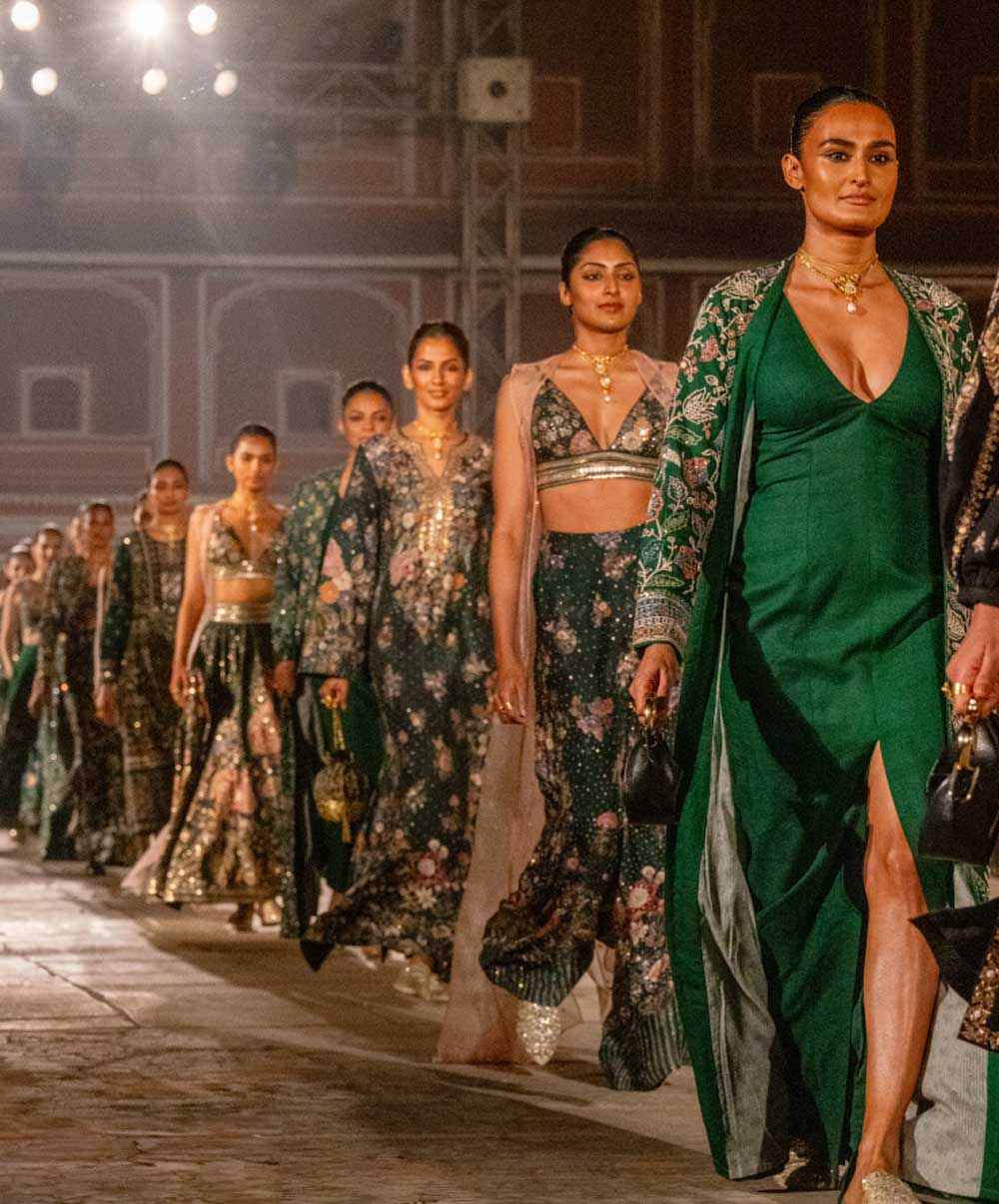 Anita Dongre’s collaboration with the Princess Diya Kumari Foundation for her 2023 Jaipur show is a shining example of how high fashion can uplift local communities. The collection featured hand-embroidered pieces crafted by women artisans trained through the foundation. This partnership not only showcased exquisite craftsmanship but also empowered women by providing them with skills and financial independence. By spotlighting these artisans on a global platform, Dongre reaffirmed that fashion can be a vehicle for social change.