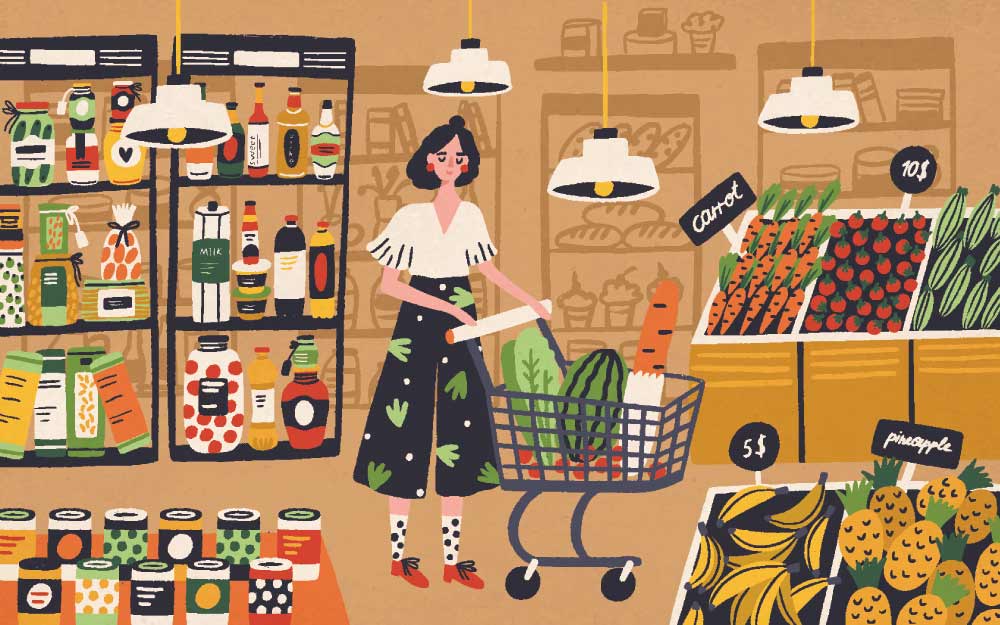 When you go to the departmental store, only walk around the “outer ring” of the store—that’s where the healthy food usually lives: fruits, vegetables, nuts, and dairy, lean meats, fish, eggs, pulses, lose spices etc. The aisles are where all of the boxed and processed stuff is placed. Also, never go grocery shopping when you are hungry; you will pile up on treats and how.