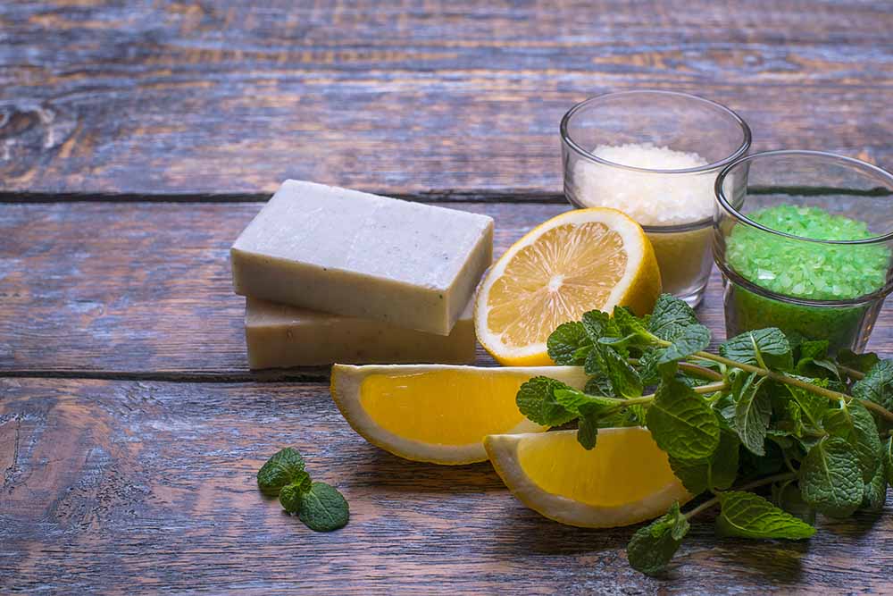 2. Pour sea salt into a small bowl. Add peppermint and lavender essential oil and stir thoroughly.