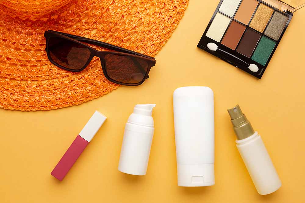 गर्मी के मौसम में अधिक मेकअप नहीं करना चाहिए। गर्मी में भारी मेकअप पोर्स को बंद कर सकता है। लाइट बीबी क्रीम या टिंटेड मॉइस्चराइजर का इस्तेमाल करें। वाटरप्रूफ मेकअप का भी इस्तेमाल आप कर सकती हैं। साथ ही रात में सोने से पहले मेकअप को हटाना न भूलें। गर्मी के मौसम में चेहरे को ठंडक देना भी जरूरी होता है। इसके लिए आप गुलाब जल के स्प्रे का इस्तेमाल कर सकती हैं। फेस मिस्ट का भी उपयोग कर सकती हैं। गर्मी के मौसम में आप बर्फ का इस्तेमाल भी अपने चेहरे पर कर सकती हैं। लेकिन ध्यान रखें कि मेकअप को सीधे आपको चेहरे पर नहीं लगाना है। कपड़े में लपेटकर हल्का दबाएं। अगर धूप में आपकी त्वचा बर्न हो गई है, तो एलोवेरा जेल लगाएं। ठंडे दूध की पट्टी लगाएं। ठंडे पानी से चेहरा साफ करें और खुद को कुछ दिनों के लिए धूप से बचाकर रखें।