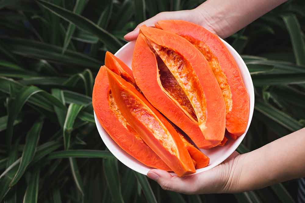 पपीता चेहरे के लिए सबसे अच्छा माना जाता है। इसका उपयोग करने के लिए चेहरे पर पपीता के स्लाइस से मालिश करें आप देखेंगे कि चेहरे की त्वचा से मेकअप हटने लगता है। पपीता आपकी त्वचा को नमी भी प्रदान करता है, जिससे मेकअप हटाने के बाद त्वचा मुलायम और हाइड्रेट रहती है। आप पपीता का पेस्ट बनाकर भी इससे चेहरे की मसाज कर सकती हैं। पपीते को चेहरे पर लगभग 1-2 मिनट तक हल्के हाथों से मसाज करें। पपीते का एंजाइम मेकअप को धीरे-धीरे घुलने में मदद करेगा। इसके बाद चेहरे को साफ पानी से धो लें।