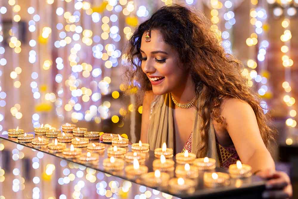 दिवाली के मौके पैर साड़ियां बेहद पसंद से पहनी जाती हैं, ऐसे में अगर स्टाइल की बात करें, दरअसल, गहरे लाल रंग की चंदेरी साड़ी दिवाली के लिए बेस्ट रहती है। दिवाली के खूबसूरत परिधानों की बात करें, तो चंदेरी साड़ियां दिवाली के लिए सबसे अच्छी साड़ियों में से एक हैं। यह साड़ी विभिन्न डिजाइनों, पैटर्न और रंगों में उपलब्ध रहती हैं, लेकिन चंदेरी साड़ी कमाल लगती हैं। भारतीय साड़ी उद्योग के रत्न के रूप में जानी जाने वाली बनारसी साड़ी आपके त्यौहारों के परिधान का हिस्सा जरूर होनी चाहिए। इसका शानदार रूप और खूबसूरत रूप सदियों से महिलाओं को आकर्षित करता रहा है। इनके अलावा, नौ गज लंबी माहेश्वरी साड़ियां भी खूब शौक से पहनी जाती हैं और यह शुद्ध रूप से पारंपरिक परिधान मानी जाती हैं। इनका अलावा, कोटा डोरिया साड़ियां, भागलपुरी साड़ियां, बांधनी साड़ियां और कांथा साड़ियां भी बेहद पसंद की जाती हैं। दिवाली पर शाही साड़ी लुक बनाने में गहनों के गहरे रंग मददगार साबित होंगे। धातु की झलक वाले पेस्टल रंग आधुनिक उत्सवों के लिए उपयुक्त हैं। साथ ही मिट्टी के रंग पारंपरिक दिवाली साड़ी लुक भी चार चांद लगा देंगे।