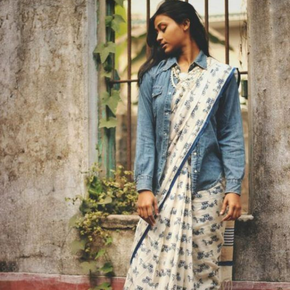 इन दिनों शर्ट्स पर भी काफी अच्छे से स्टाइलिंग की जा रही है साड़ियों की। फ्लोरसेंट कलर के शर्ट्स, व्हाइट शर्ट्स पर तो खासतौर से साड़ी काफी अच्छी लगती है। साड़ी में आगे की तरफ से नॉट्स बना कर इसे स्टाइलिश लुक दिया जा सकता है।