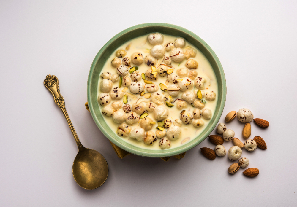 मखाना एक ऐसा आहार है, जो हर तरह से शरीर के लिए काफी अच्छा होता है। इसमें फाइबर होते हैं और जो शरीर के लिए जरूरी होते हैं, इसके सेवन से शरीर में ऊर्जा भी आती है। ऐसे में मखाने की खीर, एक ऐसी डिश है, जो आम दिनों के साथ-साथ व्रत में भी खूब खा सकते हैं, क्योंकि इससे पेट भी भरा हुआ सा लगता है और भूख भी नहीं लगती है। इसे बनाना भी आसान है। मखाना को कड़ाही में हल्का ब्राउन भून लेना है। घी डालना है, तब भी हल्का ही डालें। इसको भूनने के बाद, थोड़ा ठंडा होने देना है और फिर इसको मिक्सर में डाल कर एक बार ग्राइंडर चला दें। फिर दूसरे बर्तन में दूध गर्म कर लें और फिर उसमें मखाना डालें, 5 से दस मिनट तक चलाती रहें, फिर गैस बन करके, इसमें थोड़ी चीनी और थोड़े ड्राईफ्रुइट्स डालें, चीनी नहीं भी डालेंगी, तब भी मखाने की खीर काफी टेस्टी लगती हो और यह हेल्दी भी रहती है। आप सिर्फ मखाने को हल्का सा फ्राई करके भी खा सकती हैं।