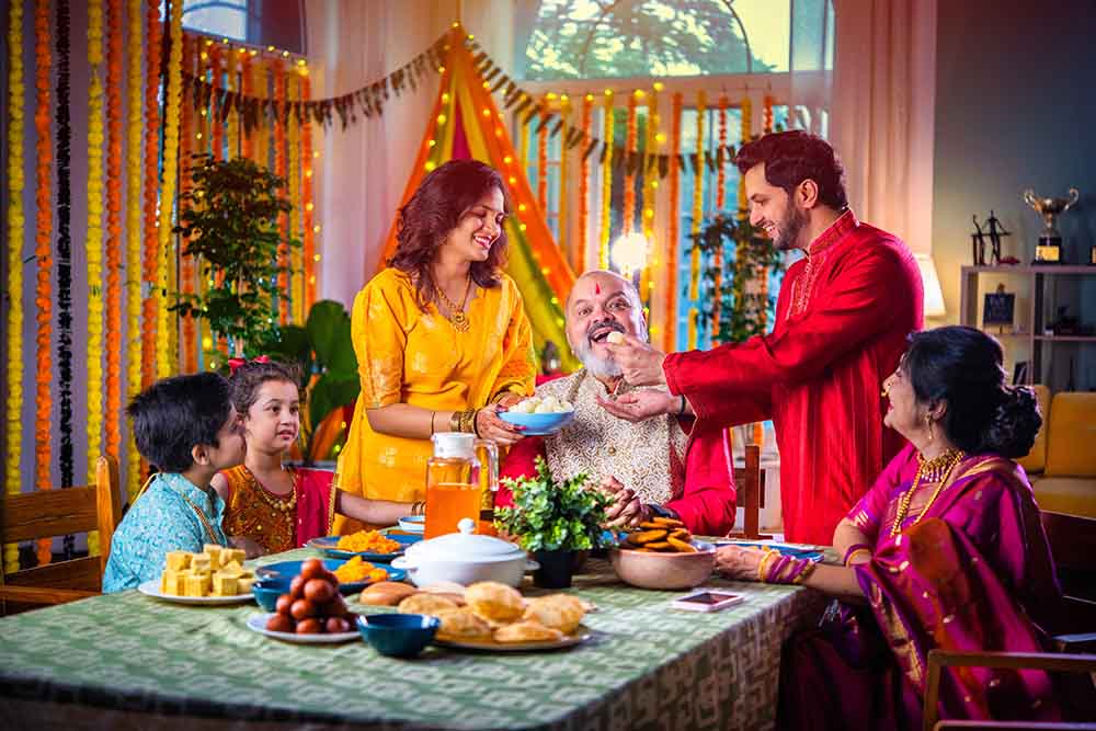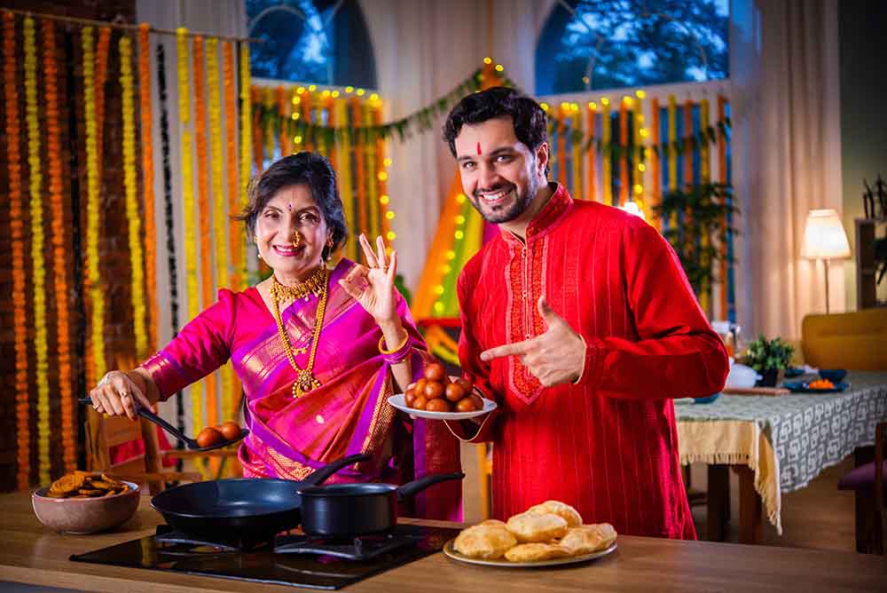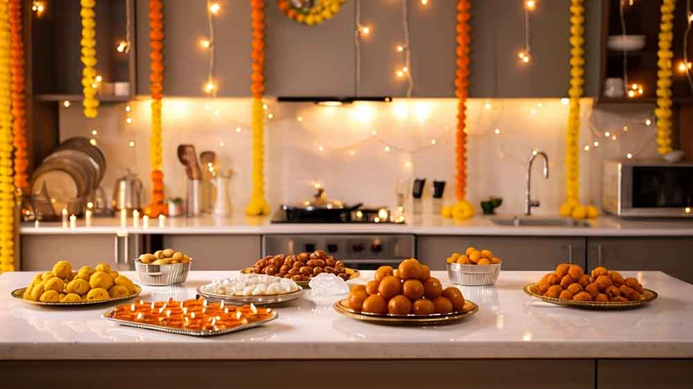दिवाली का मौका है तो बिना मुंह मीठा किये तो बात नहीं बनेगी है न ! तो आइए बताते हैं कि मीठे में क्या-क्या चीजें शामिल की जा सकती हैं। दरअसल, छोटी-छोटी चीज को अलग तरह से भी बनाया जा सकता है और टेस्टी बन सकती हैं मिठाइयां। ऐसे में बात करें, तो गुलाब जामुन चीजकेक कमाल का लगता है, वहीं गुलाब जामुन के बेस और क्रीमी चीजकेक टॉपिंग वाला एक स्वादिष्ट मैश-अप बना सकता है, आजकल मोतीचूर से कई तरह की चीजें बनाई जा रही हैं। इसमें मोतीचूर लड्डू बेस, चीजकेक फिलिंग और कुरकुरी टॉपिंग वाली एक परतदार मिठाई भी अच्छी लगती है। फिर रसमलाई कपकेक भी अच्छी लगती है और इलायची से सजे वनीला केक की परतें केसर के स्वाद वाले दूध के मिश्रण में भिगोई जाती हैं, ऊपर से व्हीप्ड क्रीम और कटे हुए मेवे डाले जाते हैं। इन सबके अलावा, सेब टार्ट भी खास लगता है। इनके अलावा, क्लासिक भारतीय फज का चॉकलेट भी अच्छा लगता है और पिस्ता या गुलाब जैसे स्वादों वाली मलाईदार कुल्फी भी इस मौके के लिए अच्छी है। इनके अलावा, गुलाब जामुन और बासुंदी अच्छी लगती है। इन सबके साथ पापड़, सलाद और रायता भी रखा जा सकता है।