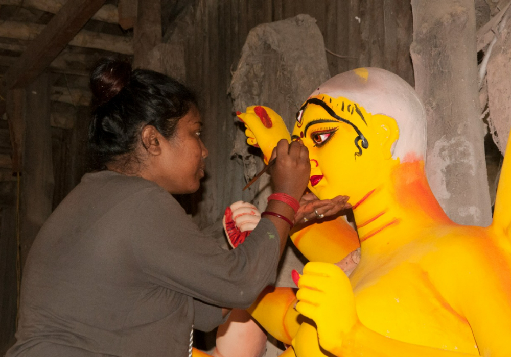 कोलकाता का कुम्हारटोली का अपना इतिहास रहा है, जहां देवी दुर्गा की प्रतिमाएं भव्य रूप से बनाई जाती हैं और दुर्गा पूजा के आगमन के कई महीने पहले से इस पर काम शुरू हो जाता है। इस जगह की खास बात यह रही है कि अरसे तक, यहां पुरुषों द्वारा ही देवी दुर्गा की प्रतिमाएं तैयार की जाती थीं, लेकिन कुछ महिलाओं ने अपनी सूझ-बूझ और सोच से इसमें बदलाव किया। चीना पाल उन महिलाओं में से एक हैं, जिन्होंने कुम्हार टोली में दुर्गा मां की प्रतिमाएं बनाने की शुरुआत करने वाली महिलाओं में से एक रही हैं। उन्होंने वर्ष 1994 में उस वक़्त इस काम की शुरुआत की, जब उनके पिताजी बीमार पड़े और उनके दो भाइयों को इसमें कोई रुचि नहीं ली, चीना को लेकर लोगों ने कई बातें बनायीं, लेकिन उन्होंने इन बातों पर ध्यान नहीं दिया और अपने काम को जारी रखा, आज वह बड़ी आर्टिस्ट बन चुकी हैं और पूरे कोलकाता में उनकी बनाई देवी मां की प्रतिमा स्थापित होती हैं। इनके अलावा माला पाल, अल्पना पाल, सुष्मिता पाल और ऐसी कई कुम्हारटोली की महिलाएं हैं, जो मूर्तिकार हैं और अपनी कला से बेइंतेहां मोहब्बत करती हैं।