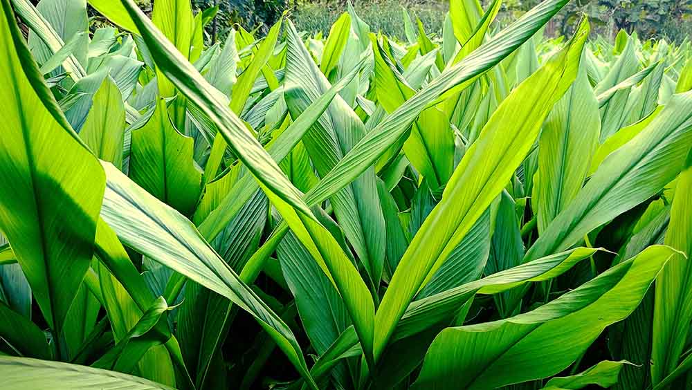 हल्दी और हालूद का इस्तेमाल भी मां के शृंगार में किया जाता है। साथ ही पूजा के हर सजावट में जिनमें अल्पना भी शामिल हैं, हल्दी या हालूद का अंदाज खास है, यह भी लगभग हर पूजा में इस्तेमाल की जाने वाली पत्तियां हैं और इनका भी देवी दुर्गा से खास कनेक्शन रहता है। देवी दुर्गा किस तरह पवित्रता, उपचारात्मक और शुभ चीजों के प्रतीक के रूप में जानी जाती है, यह पौधे इस बात को भी दर्शाते हैं।